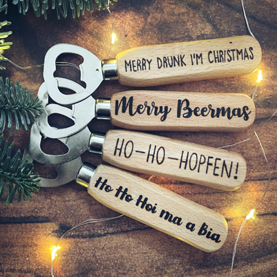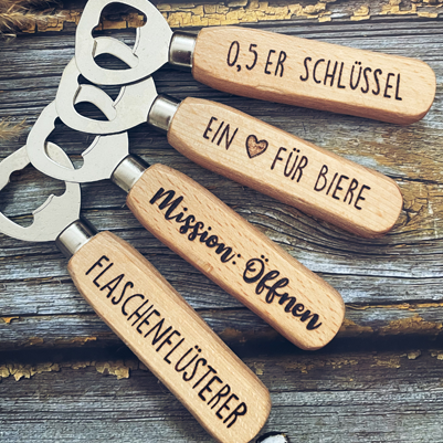 Die Flaschenöffner überzeugen durch einen stabilen Holzgriff und ein zeitloses, hochwertiges Design. Sie können ein- oder beidseitig personalisiert werden – mit Namen, Trinkspruch oder einem individuellen Wunschtext.