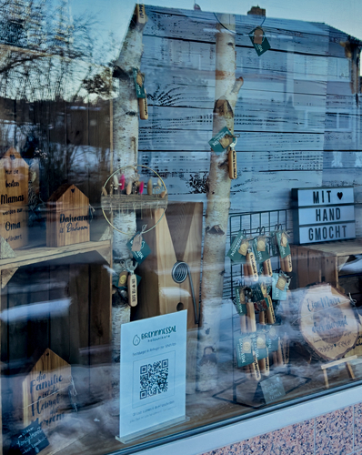 Im Schaufenster findest du dafür einen Aufsteller mit QR-Code, der dich sofort zu WhatsApp führt.