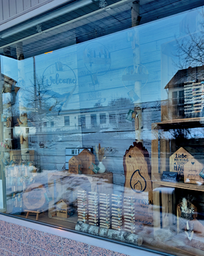 In meinem Schaufenster kannst du meine Holzunikate ganz in Ruhe live ansehen. Es handelt sich nicht um ein Geschäft, sondern um ein reines Ausstellungsschaufenster. Das Schaufenster wird regelmäßig neu gestaltet – je nach Jahreszeit findest du dort auch saisonale Produkte, zum Beispiel zu Ostern oder Weihnachten.